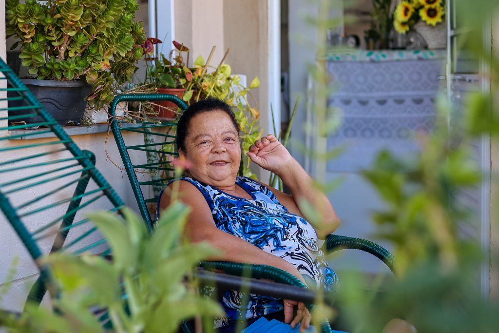 O município de Catanduva, na região de São José do Rio Preto, foi um dos contemplados pelo Vida Longa e recebeu, em junho de 2023, o Residencial Amália Nunes, composto por 28 casas. É lá que a senhora Edna da Silva, de 72 anos, mora há cerca de um ano e viu sua vida ser transformada. “Eu pagava R$600 de aluguel quando surgiu essa oportunidade. Eu vim para cá e para mim foi bom. Se não fosse esse programa, eu não ia estar bem, não. O aluguel estava subindo e, com água, luz, gás e a comida, as coisas iam ficar bem complicadas”, conta.
