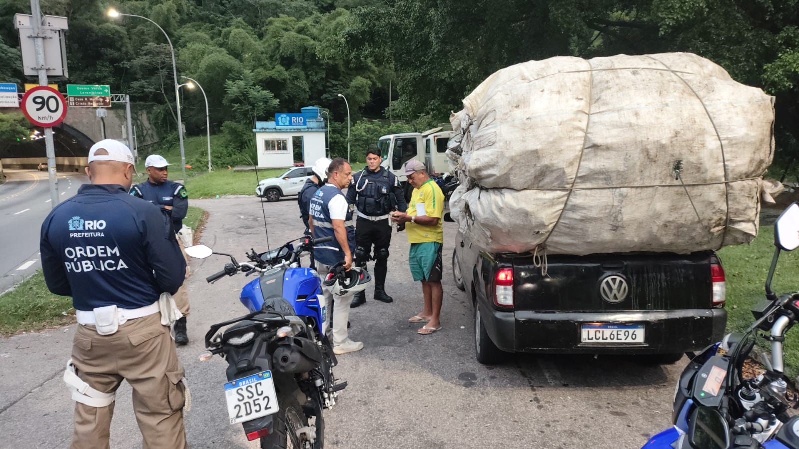 Agentes da Secretaria Municipal de Ordem Pública (Seop) abordaram, no início da manhã desta terça-feira (3/3), um veículo que transportava irregularmente uma carga de recicláveis na caçamba. O carro foi abordado pelos agentes dentro da primeira galeria do Túnel Rebouças, sentido Zona Norte, e parou no recuo existente entre as duas galerias. A abordagem foi realizada após monitoramento das equipes de Gerência de Fiscalização de Estacionamentos e Reboques e das equipes da pasta municipal na bancada situada no Centro de Operações e Resiliência (COR-Rio). O veículo, uma Saveiro de cor preta, acabou multado e rebocado para o depósito municipal.